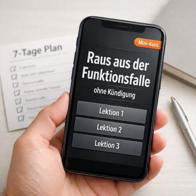 ✅ Du bekommst ein 7-Tage Rollen-Experiment (5–15 Min/Tag), um direkt im Job etwas zu verändern, ohne sofort kündigen zu müssen